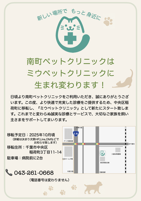 25年10月頃を目安に、病院を移転する予定です。新住所は中央区稲荷町3丁目11-14となります。下記の地図をご参照ください。